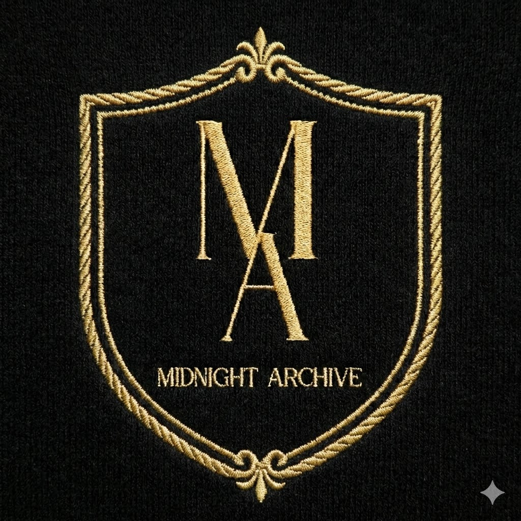 The Mark: High-density gold embroidery (Official Midnight Archive Emblem).